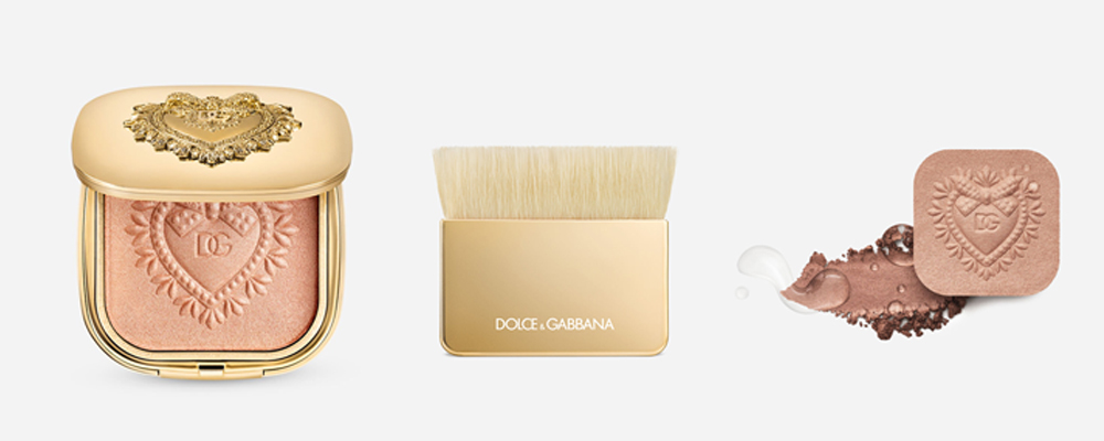 Devotion Illuminating Face Powder è un illuminante Oil infused a lunga durata – fino a 16 ore – disponibile in una tonalità universale, creato con un’alta concentrazione di pigmenti e perle che dona istantaneamente un aspetto di delicata luminosità a ogni tonalità di pelle. Il suo packaging rappresenta a pieno l’anima elegante del brand. Da uno scrigno color oro con un Cuore Sacro in rilievo posto sopra la confezione, appare il prodotto, anch’esso con una stampa in rilievo del simbolo.