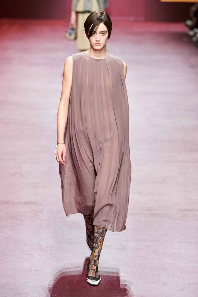 Maria Grazia Chiuri sceglie per questa collezione di collaborare con D-AirLab, una startup innovativa che crea airbag per la protezione del corpo umano. In questo modo il futuro della tecnologia dialoga con abiti raffinati e senza tempo, aprendo la strada verso la prossima era. “The Next Era” è infatti lo statement che ritroviamo su alcuni abiti e accessori in passerella, a testimoniare lo slancio verso il futuro.