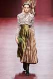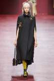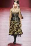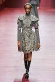Altri elementi della collezione riportano alla memoria epoche lontane: le pettinature delle modelle, completate da eleganti coroncine, richiamano le madonne rappresentate nei dipinti rinascimentali; abiti stampati e maglioni ricamati rievocano le fantasie degli arazzi; gonne e top damascati lasciano spazio a un’eleganza senza tempo.