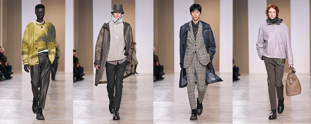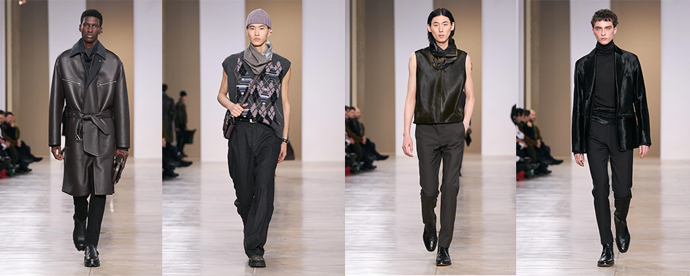 Cappotti di pelle di pecora, giacche di pelle, bomber di seta, abiti a quadri e gilet sfilano in passerella e si dimostrano capi caratterizzati da una coolness che riesce ad adattarsi a seconda delle situazioni. I volumi generosi si alternano a capi più avvolgenti, le giacche diventano più corte; l’importante è che ogni pezzo della collezione sia in grado di adattarsi, sovrapporsi, trasformarsi, per entrare in sintonia con gli altri e con le silhouette stesse.