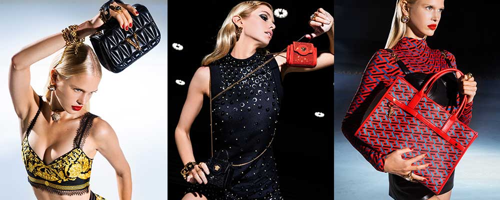 Tra i prodotti che compongono la Holiday Collection si trovano look audaci, chic e cool. Regalo di punta è la borsa La Medusa nelle nuove varianti colore, presentata nel video tra le mani della Ghilardi che ne esalta la forma e la bellezza. Troviamo poi berretti, sciarpe, gioielli e le sneakers trigreca, oltre all’immancabile selezione di look total Versace in stampa barocco, per un Natale all’insegna di colore e coolness.