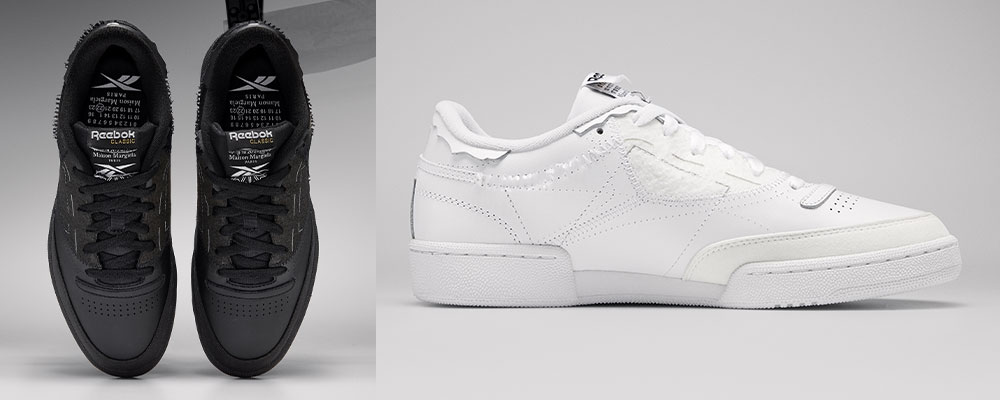 Il Club C è un pezzo straordinario della collezione Memory Of. Secondo il designer di calzature Reebok Evan Belforti, la rielaborata Maison Margiela Club C esemplifica il processo di progettazione collaborativa, che includeva “definire i limiti di ogni scarpa ed esplorare il più possibile all’interno di quei confini”.