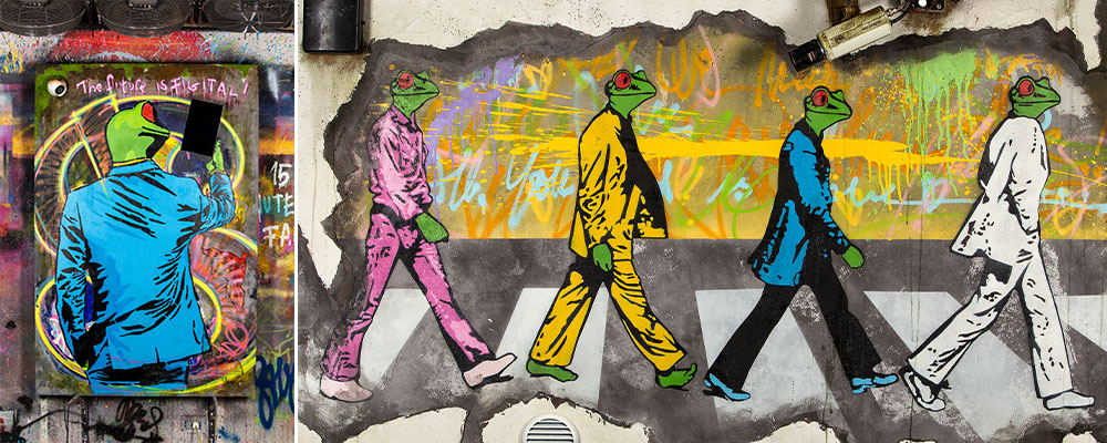 Tanti. Amo, su tanti, il libro di Austin Kleon “Ruba come un artista”. Io ho rubato a tanti ma su tanti voglio citare due che in particolare sono stati il mio occhio destro e il sinistro: Banksy e Manzoni. Ma proprio come sostiene Kleon, rubare agli artisti che ci hanno ispirato è normale se ad un certo punto si trova la propria strada. É passato tanto tempo da quando fui definito il Banksy italiano. Capita a tanti artisti che usano lo stencil. Ora ho il piacere di essere riconosciuto come Mr. Savethewall grazie alla mia ricerca, alla mia crescita, dai ranocchi in abito elegante ai miei Wallsaved. Ora Banksy e Manzoni li ho nel cuore.