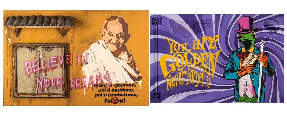 Il business manager e lo street artist hanno convissuto e tuttora coesistono rendendo possibili certe scelte diversamente inspiegabili. Per uscire di notte e aggirarsi per le città deserte lasciando i propri messaggi sui muri, ci vuole una certa dose di incoscienza o di follia. Bisogna avere “fame”, avrebbe detto Steve Jobs, la stessa fame e la medesima follia con cui si ribalta la scrivania lasciando il certo per l’incerto e seguire i propri sogni. Fame di libertà. Quella libertà che come manager non potevo esprimere pienamente. La libertà è vita e quella urgenza, quel bisogno espressivo, nasce dal bisogno di libertà che ad un certo punto non si può più contenere. L’artista è libero per definizione.
