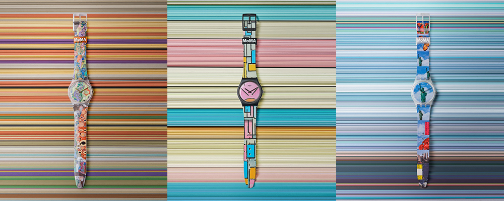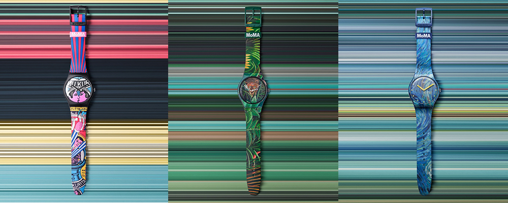 Dopo 38 anni di carriera, l’importante ruolo giocato dall’arte nel mondo degli orologi Swatch continua a farsi sentire. Tra le influenze della pop art anni ‘60 e della cultura popolare in generale, molti artisti hanno lasciato la firma sui famosi cinturini di plastica. Tra questi, anche Keith Haring e Renzo Piano hanno dato il proprio contributo. Per questa edizione speciale, invece, quadranti e cinturini hanno ospitato il lavoro di 5 grandi artisti esposti al MoMa di New York.