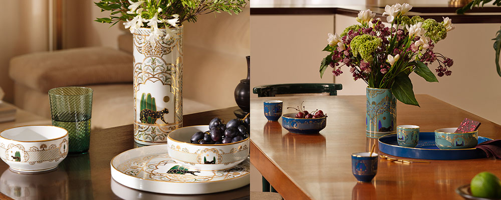 Le nuove creazioni firmate Cartier creano uno spirito caloroso, familiare e festivo, e sprigionano tutti i codici della maison e l’eccellenza del suo savoir-faire. La classica pantera nera di Cartier è ora protagonista di una collezione di oggettistica per la casa in porcellana nera e oro, e viene accostata a una linea di accessori con design ispirato all’arte islamica.