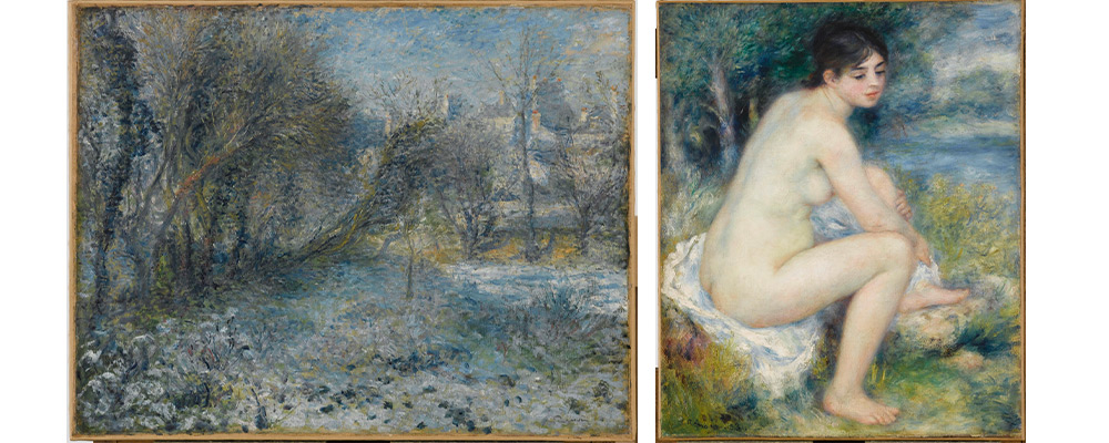 Vengono esposti moltissimi capolavori, dalle tele degli anni ’70 dell’Ottocento si passa alle opere dei primi anni del Novecento. Tra le opere di Renoir spiccano le pitture en plein air, i suoi colori sgargianti, le raffigurazioni di Parigi e lo studio del movimento di corpi e luci. Dall’altra parte, Cézanne viene ammirato per i suoi colori anti mimetici, per l’abolizione della prospettiva tradizionale e per le sue tecniche avanguardistiche.