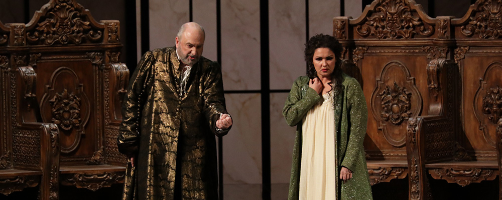 La vicenda si svolge nella Spagna di Filippo II, e dipinge un affresco che raffigura da una parte amore, amicizia e libertà, dall’altra il senso di potere, supremazia estrema e solitudine. I personaggi, spesso solitari, vivono un intreccio di tradimenti, sospetti e delusioni. Il regista di questa edizione è Lluis Pasqual, i costumi sono di Franca Squarciapino e le scene di Daniel Blanco; il direttore è Riccardo Chailly. Il cast davvero eccezionale, è composto da Michele Pertusi, nei panni di Filippo II, Francesco Meli è Don Carlo, Anna Netrebko è Elisabetta di Valois, Elina Garanca la principessa di Eboli e Luca Salsi Rodrigo, il marchese di posa.