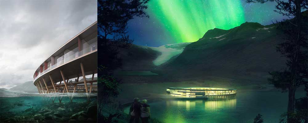 Sarà Meløy, piccolo comune a nord della Norvegia, ad ospitare la new entry delle costruzioni ecosostenibili. E al colore del paesaggio circostante, in particolare del ghiacciaio Svartisen, è ispirato il nome Svart, “nero” in norvegese. Ma a stemperare i toni cupi della natura nordica, ci penserà la trasparenza dell’hotel. L’edificio presenterà infatti una struttura circolare percorsa da enormi vetrate e sostenuta da palafitte in legno. Peter Bundgaard e Signe Bindslev Henriksen, i fondatori dello studio di architettura norvegese Snohetta, ideatore del progetto, si sono attenuti all’estetica dello stile locale. Il design dell’albergo si ispira infatti alla tradizionale Fiskehjell, struttura lignea usata per essiccare il pesce, e al Rorbue, casa stagionale dei pescatori.