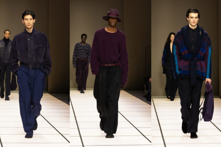 Giorgio Armani racconta un menswear fluido dove colore, materia e movimento convivono armoniosamente.