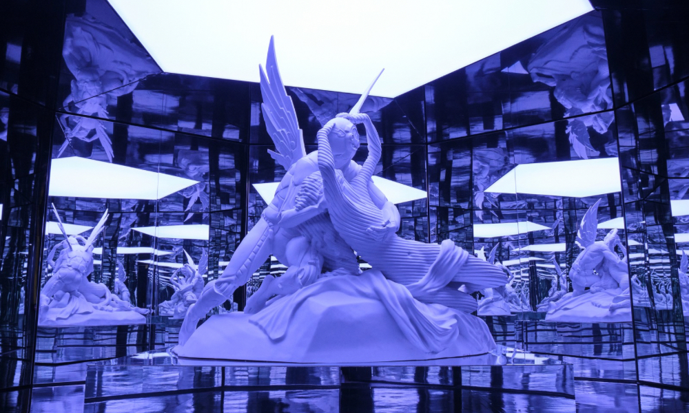 Tra le opere più scenografiche, Future Reflections, realizzata con CUPRA e Dresswall, avvolge lo spettatore in un gioco di specchi, luci e suoni. L’opera si anima attraverso la tecnologia e trasforma chi osserva in parte integrante del suo stesso riflesso. È una danza visiva tra identità e percezione, dove “ciò che appare è più vero di ciò che è”. In questo intreccio tra arte e realtà, Crespi mette in scena la fragilità dell’io digitale, invitandoci a riconoscerci nelle nostre infinite versioni.