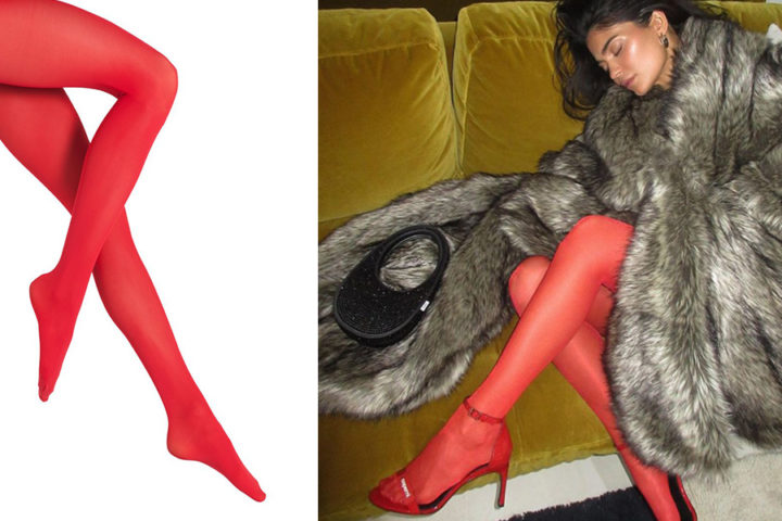 Kylie Jenner ci svela tutti i trucchi per personalizzare gli outfit con i collant rossi che esibisce sui suoi scatti social