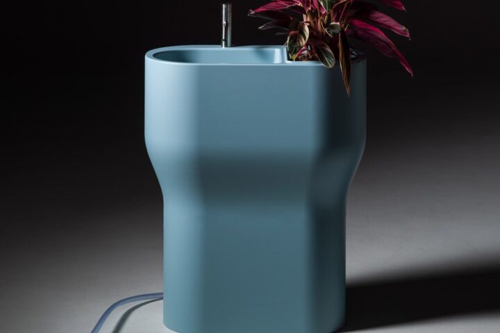 FÒRA è il lavabo monoblocco firmato JoeVelluto Studio per SAMO LINEABETA che trasforma la plastica riciclata in un elemento di design versatile, pensato per