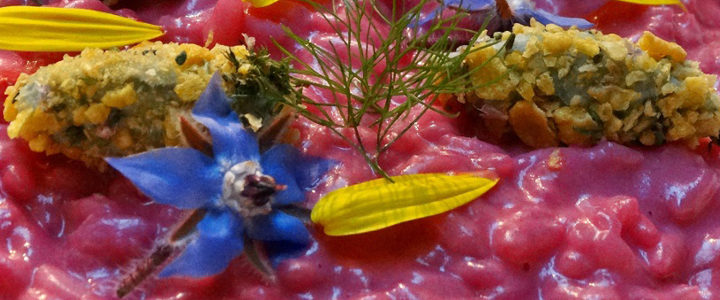 Il Risotto “Riserva San Massimo” con emulsione di barbabietola e croccantini allo zola di Fabio Castiglioni. Una ricetta sublime