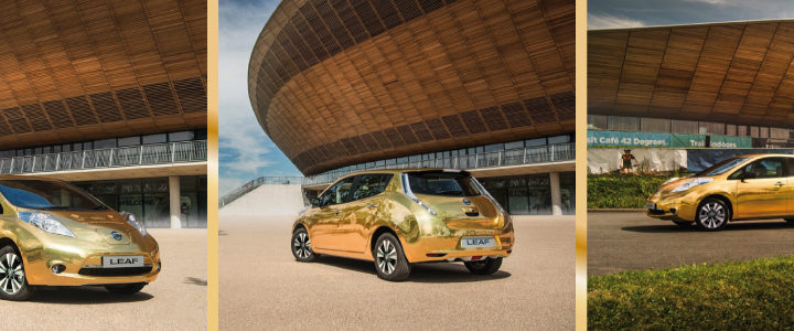 Nissan ha premiato tutti gli atleti arrivati primi sul podio ai Giochi di Rio con una vettura rivestita da uno speciale wrapping dorato, Nissan