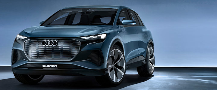 La nuovissima Audi Q4 e-tron Concept: un SUV a zero emissioni che si propone come auto eco friendly 2019 dal carattere sportivo e dinamico
