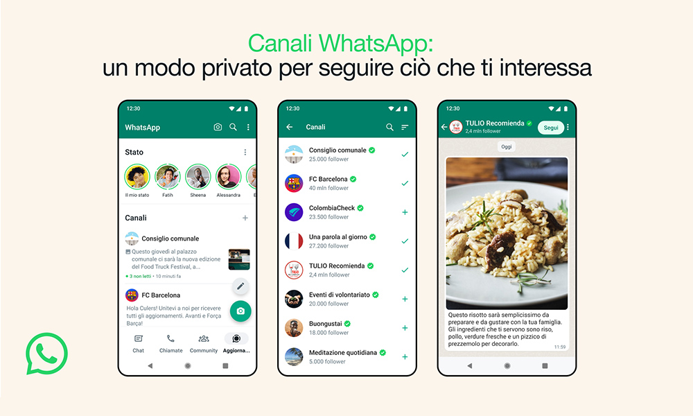 Per il lancio dei Canali, si è deciso di collaborare con figure di spicco e alcune realtà selezionate, tra cui la Singapore Heart Foundation e il fact-checker Colombia Check. Al lancio partecipano anche alcuni partner, tra cui l’International Rescue Committee e alcuni nomi dello sport, FC Barcelona e Manchester City. Un grande passo atteso e richiesto da anni, una nuova funzionalità che svolta l’utilizzo della piattaforma WhatsApp.