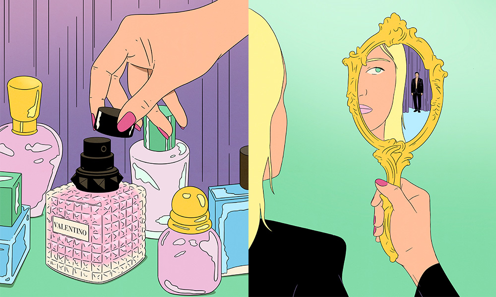 Il punto di partenza resta lui, il flacone iconico borchiato rosa, ormai simbolo della Maison. Un po’ couture e un po’ punk, tra una Roma classica e uno spirito urbano. Valentino Beauty ha deciso di esplorare proprio questa sua tensione identitaria invitando i sette artisti digitali — Infiniteyay, Daily Splice, Xeocho, Chrissie Abbott, Andrew Knives, Maria Ines Guil e Simon Bailly — a interpretare e dar voce secondo il loro linguaggio visivo Born in Roma Donna e Uomo. Ognuno di loro utilizza strumenti differenti — dall’animazione all’illustrazione, dal collage digitale alle estetiche 3D — condividendo però la stessa libertà: non replicare l’icona, ma tradirla creativamente per restituirle nuova energia.