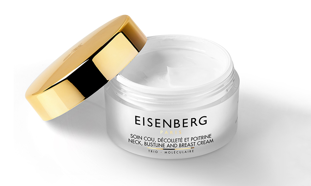 Il nuovo trattamento Eisenberg dedicato a collo, seno e decollete, è una crema fine e delicata che offre un’eccezionale cura antietà. La sua formula completa aiuta a preservare la vitalità cellulare e l’aspetto giovane della pelle dal mento al seno. La sua texture setosa e non grassa fonde delicatamente sulla pelle e viene assorbita istantaneamente donando idratazione e rigenerazione in profondità, per un aspetto rigenerato e levigato sin da subito.