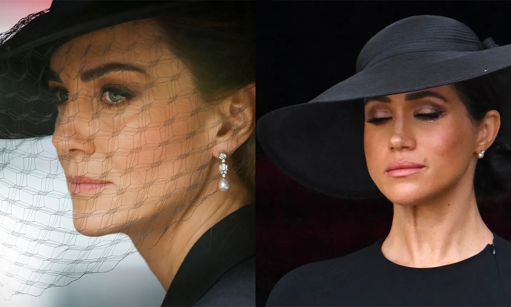 Come ad ogni funerale che si rispetti, anche questa volta è stato imposto un look total black sobrio e composto. Le sfumature del nero sono state ritrovate anche nel make up delle due donne, ognuna delle quali ha dato una sua interpretazione del trucco smokey eyes: più classico per Kate, più trendy per Meghan.