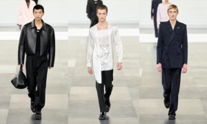 La collezione si sviluppa come una narrazione continua, in cui i tessuti fluidi incontrano strutture impeccabili