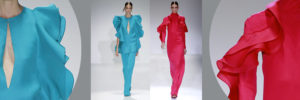 Paola Frani dal mood punk esotico. Pizzi a fiori rococò, chiffon gialli.
