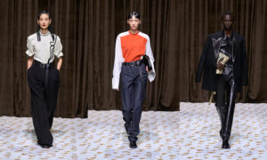 La collezione ha esplorato un’estetica urbana e sofisticata, caratterizzata da tessuti iridescenti, stampe paesaggistiche e accessori semplici ma d'impatto
