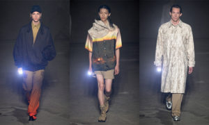 Miuccia Prada e Raf Simons indagano sulle silhouette maschili, concentrandosi sul corpo e sulla sua fluidità