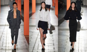 Per la settimana della moda milanese Prada crea una collezione che compenetra gli abiti da lavoro con quelli da occasione speciale