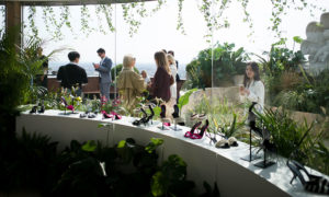René Caovilla ha presentato una collezione di scarpe gioiello colorate e i fiori hanno fatto da cornice esclusiva a questo momento magico