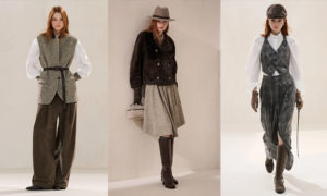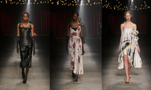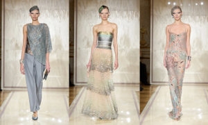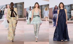 La collezione ha visto sfilare 38 look – 24 donna e 14 uomo – in un trionfo di lavorazioni sofisticate, dettagli preziosi e materiali
