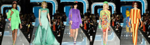 Apparentemente una retrospettiva Space Age dedicata ad una Jackie Kennedy clonata in blu sul pianeta di Star Trek, la sfilata F/W18 di Moschino presentata