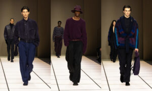 Giorgio Armani racconta un menswear fluido dove colore, materia e movimento convivono armoniosamente.