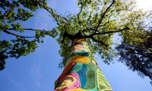 Gli alberi dei giardini pubblici Camilla Cederna prendono nuova forma e vengono vestiti da nuovi abiti realizzati a uncinetto