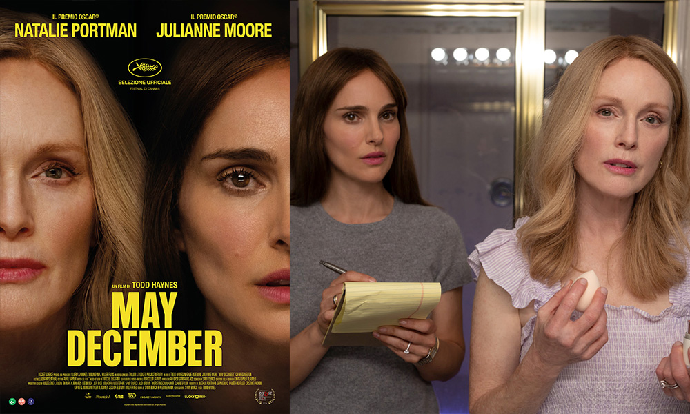 È nelle sale italiane dal 21 marzo il nuovo drama, a tratti thriller, di Todd Haynes, May December. Protagoniste della pellicola sono Natalie Portman e Julianne Moore, coinvolte in una vicenda vagamente ispirata a un fatto di cronaca vera; nella seconda metà degli anni Novanta, l’insegnante Mary Kay Letourneau fu accusata di stupro ai danni di un dodicenne, studente della scuola media dove la donna insegnava. Fu incarcerata due volte e nel periodo di prigionia diede alla luce i figli avuti dal ragazzo, con cui si sposò anni dopo.
