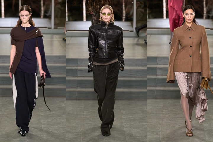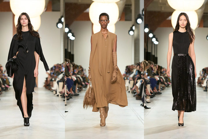 Maxwell ha puntato su una palette cromatica neutra, con toni di beige, nero, bianco e tocchi di grigio, privilegiando materiali lussuosi come la seta, la lana e la pelle. La collezione include slip dress in seta, camicie strutturate, gonne a quadri e cappotti avvolgenti, perfetti per una donna contemporanea che ama l’eleganza senza rinunciare alla funzionalità.
