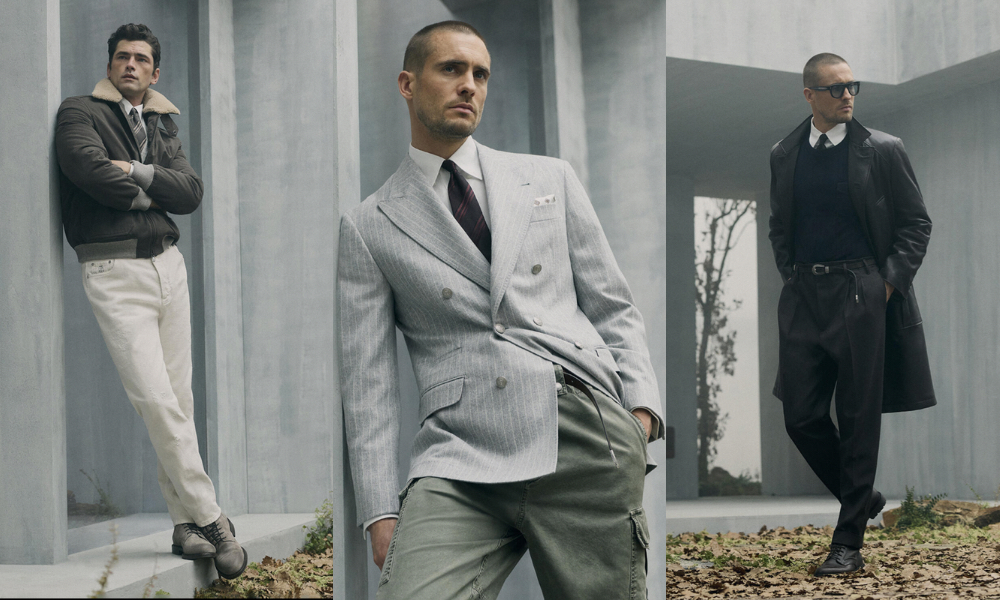 Le silhouette sono rilassate ma precise, pensate per accompagnare i gesti della vita quotidiana. L’eleganza proposta è sobria, mai ostentata, e si esprime attraverso proporzioni equilibrate e palette cromatiche naturali. Il menswear di Brunello Cucinelli interpreta il lusso come esperienza quotidiana, accessibile e profondamente umana.