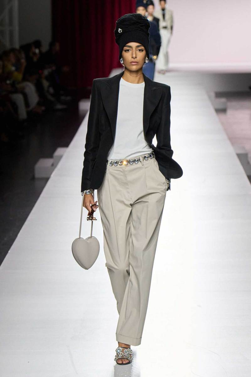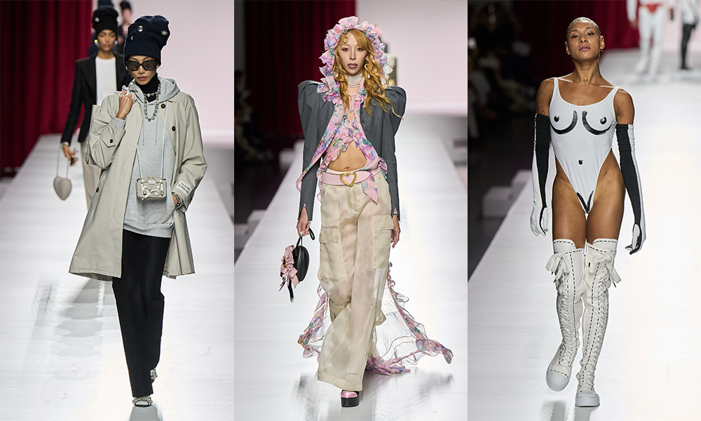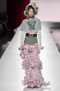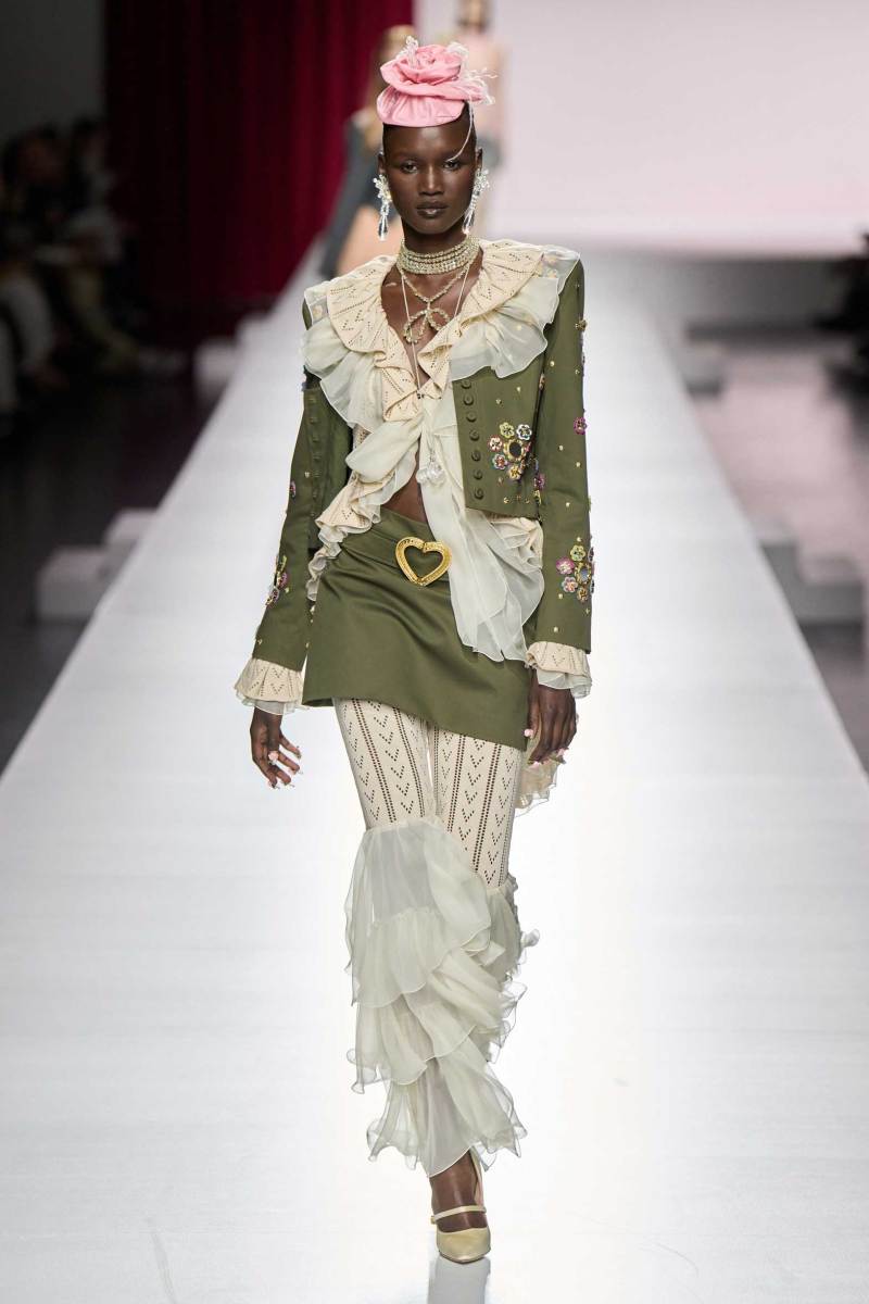Un grande sipario rosso, una passerella bianca a ferro di cavallo, quattro nomi e quattro atti per ogni decade del brand che ha fatto dell’irriverenza e del Dadaismo la sua firma. Un salto nel passato raccontato da Carlyne Cerf de Dudzeele, stylist braccio destro di Jeremy Scott, Gabriella Karefa-Johnson, global contributing fashion editor at large di Vogue, Katie Grand, fondatrice di LOVE e Perfect Magazine, e Lucia Liu, fashion stylist e creative director fondatrice della piattaforma creativa theBallroom, nell’attesa di sapere chi riscriverà la storia del brand.