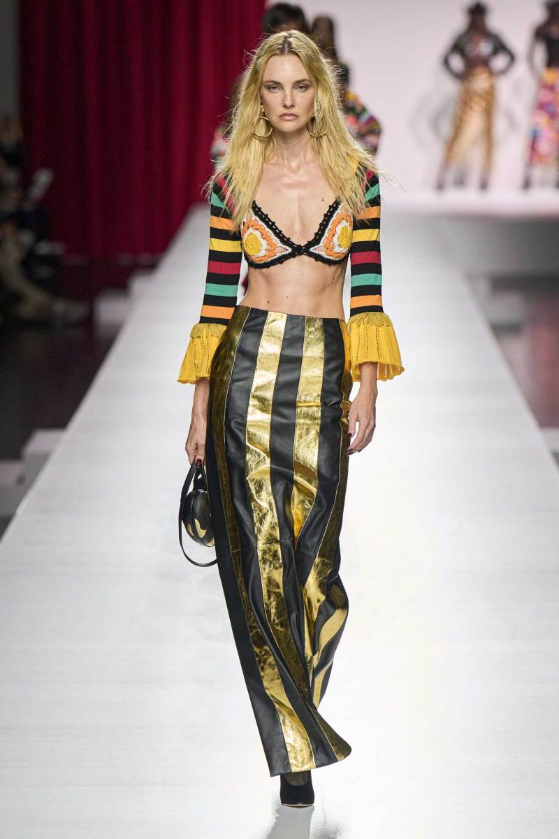 Un’interpretazione più audace e sensuale quella successiva, firmata da Gabriella Karefa-Johnson ed il suo casting Black Power che ha ricordato le passerelle di Franco degli anni Novanta, per l’utilizzo dei colori, le gonne svolazzanti, i tailleur simili Chanel decomposti e un tocco anni Settanta suggerito dalle gonne effetto centrino della nonna, con il patchwork di quadrati in crochet.
