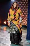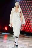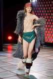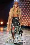 Silhouette teatrali e pattern floreali dominano la scena durante lo show, all’insegna dell’ “extra-vaganza” tipica del brand. Non mancano i riferimenti al mondo dello spettacolo con vestiti dal pattern multicolore che richiamano la commedia dell’arte – Arlecchino in questo caso – e piume di struzzo nei boa da cabaret.