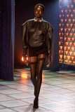 Dalla luce e l’allegria del cabaret e della commedia dell’arte si passa poi – imprevedibilmente, in puro stile Vivienne Westwood – all’espressione della tristezza e del buio: capi total-black e dai toni del grigio prendono il posto del colore, quasi come metafora per quella che è – purtroppo – la nostra recente storia.