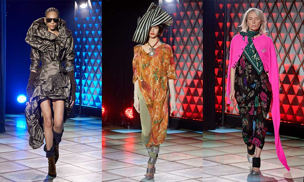 Forme, colori, arte e spettacolo. Così Andreas Kronthaler onora il brand della moglie alla Parigi Fashion Week, il tutto all’insegna della ricerca sostenibile e materiali cruelty-free. Anche il nome della collezione stessa, “La nouvelle éve”, prende ispirazione dall’ iconico La Nouvelle Eve Cabaret, uno dei più antichi e più eleganti teatri parigini situato ai piedi della collina di Montmartre: è proprio qui che ha luogo la sfilata.