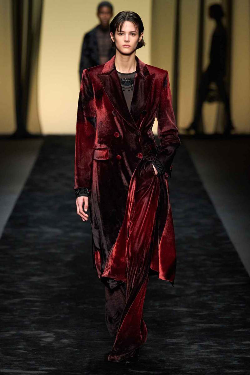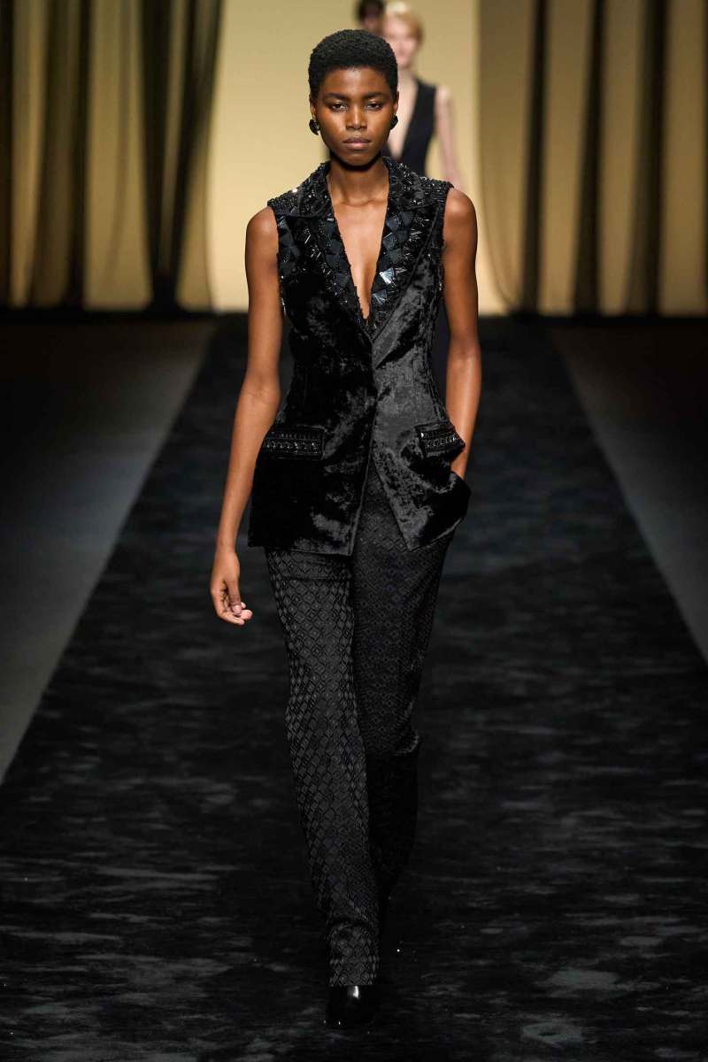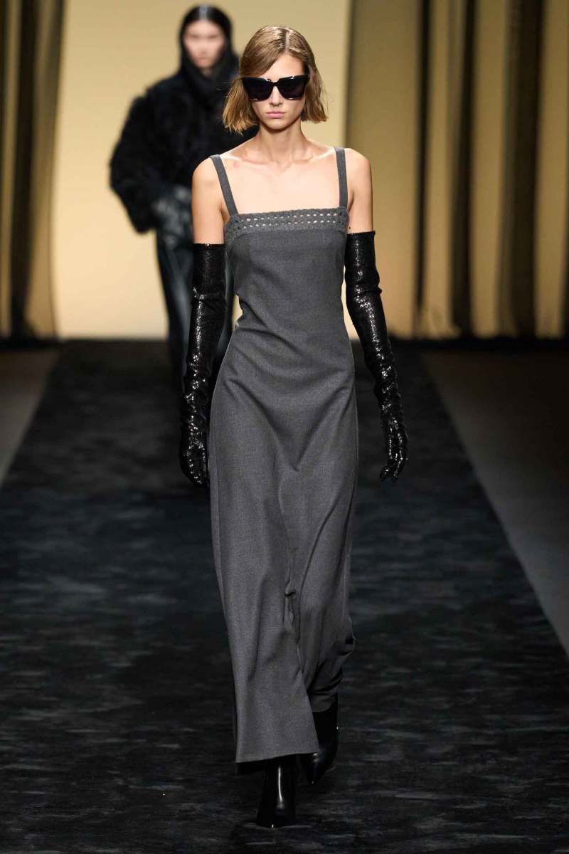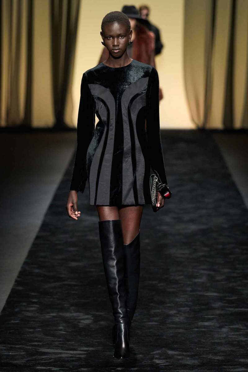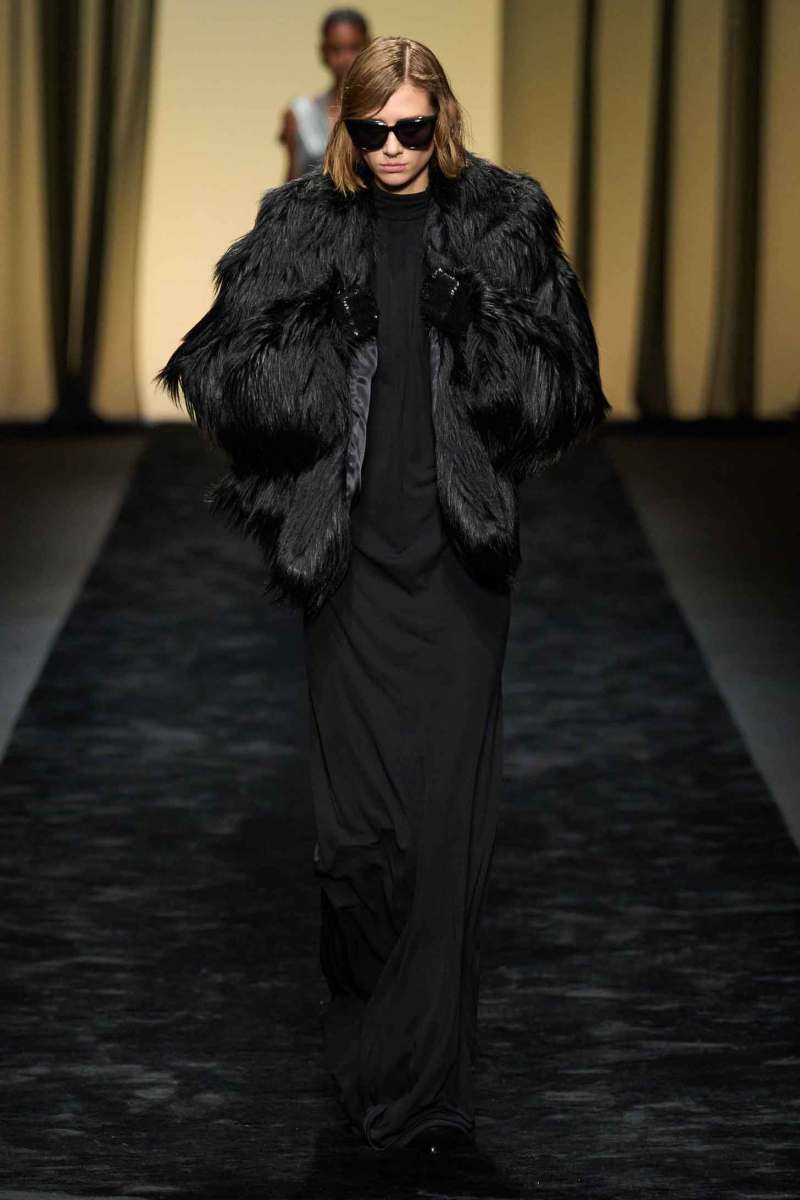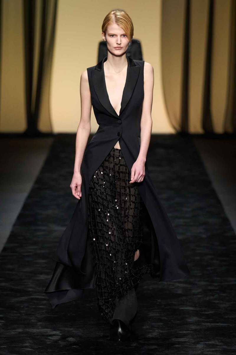 Alberta Ferretti ammanta la sua nuova collezione di codici e sensazioni notturne, in modo da rendere il tutto più misterioso e sensuale. Le silhouette lunghe e liquide sono il marchio di fabbrica inconfondibile della casa.