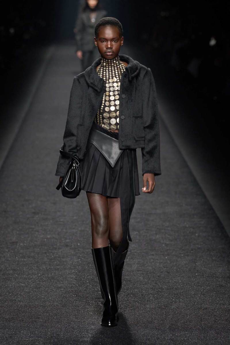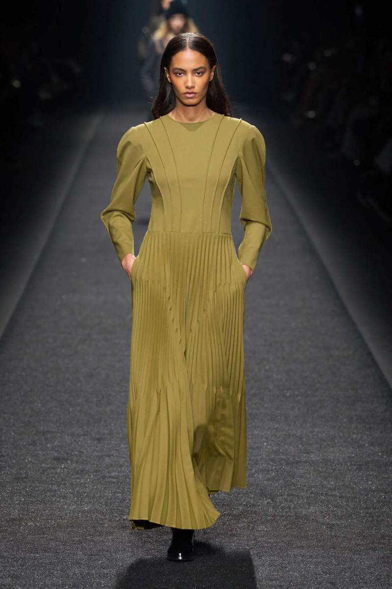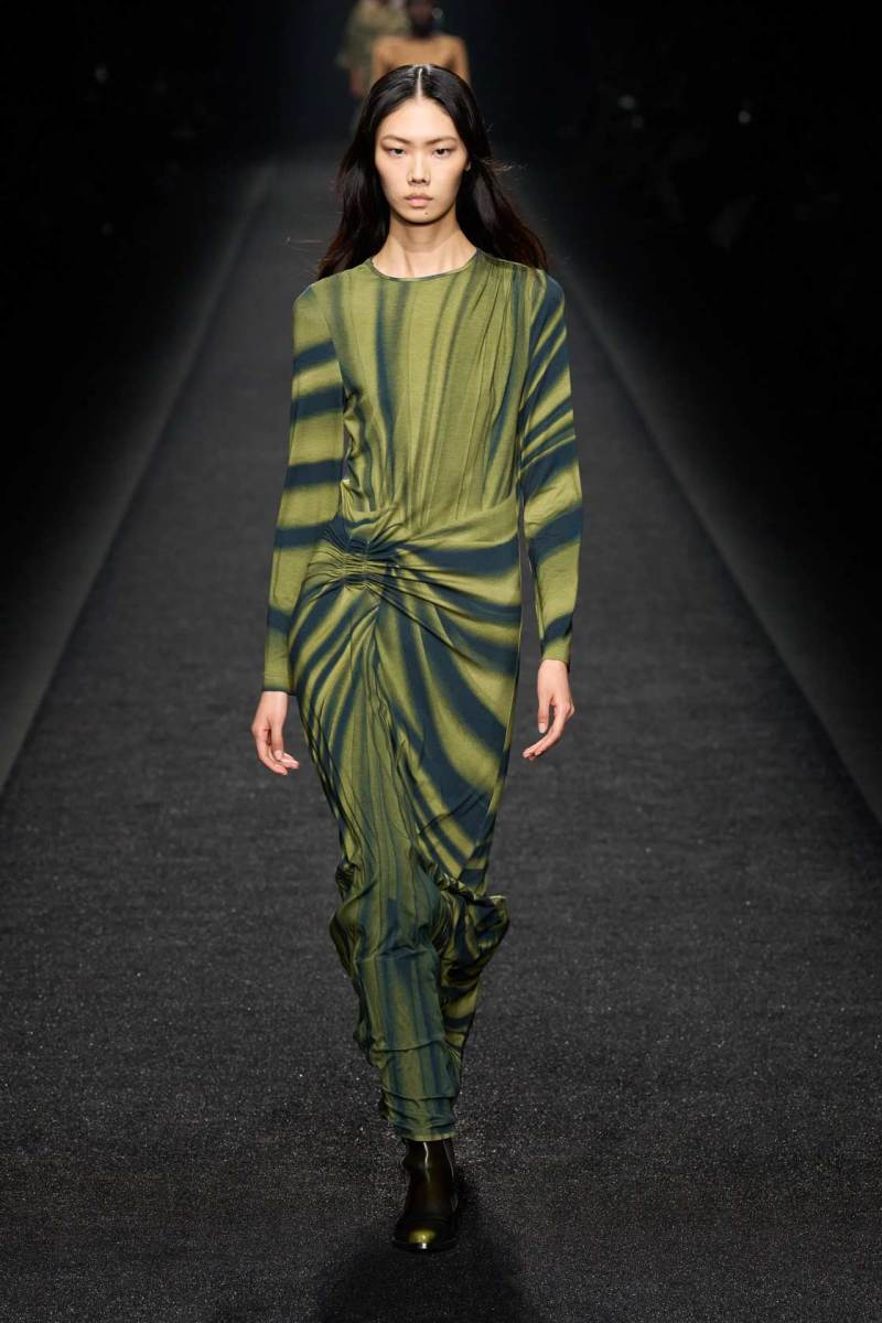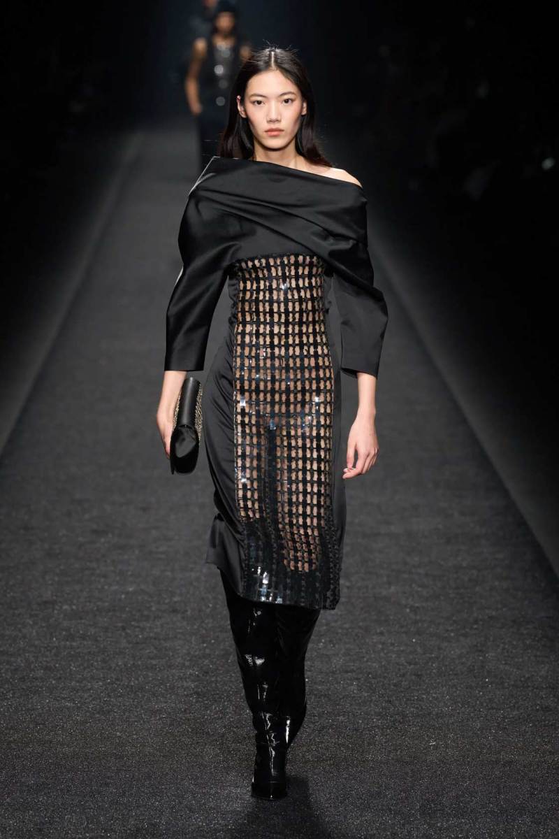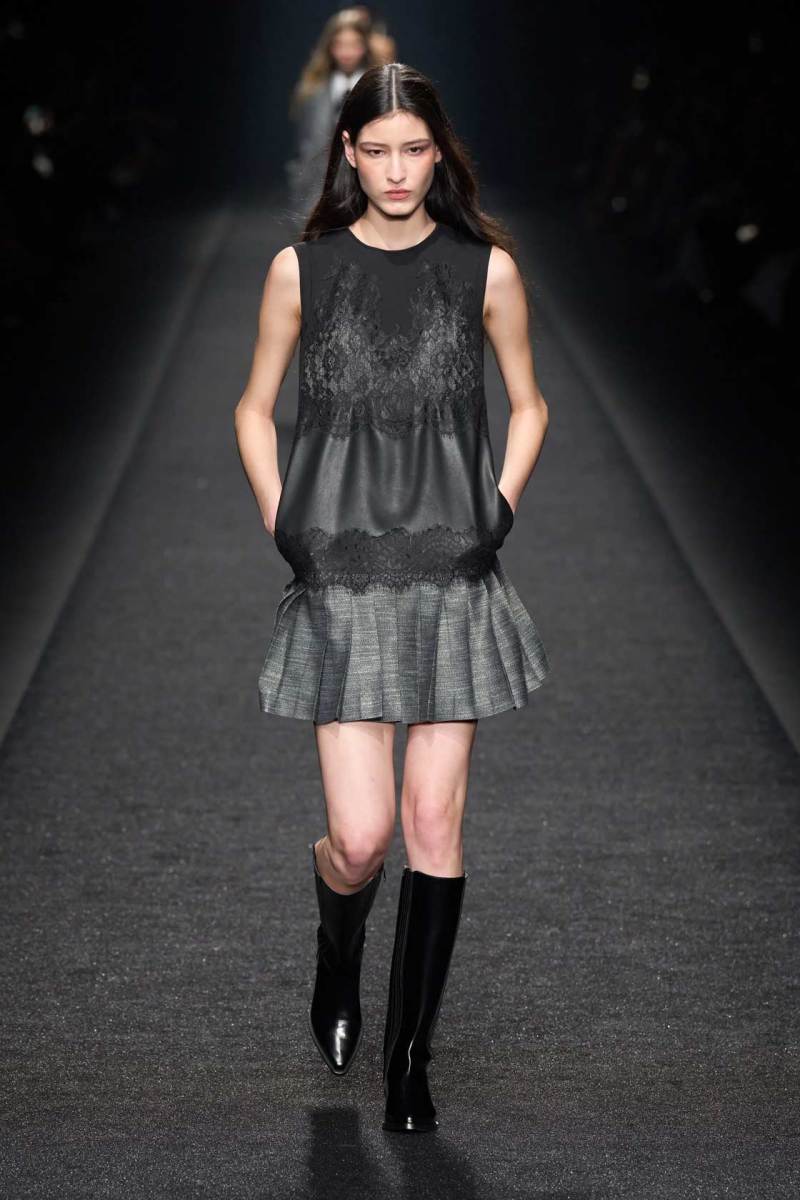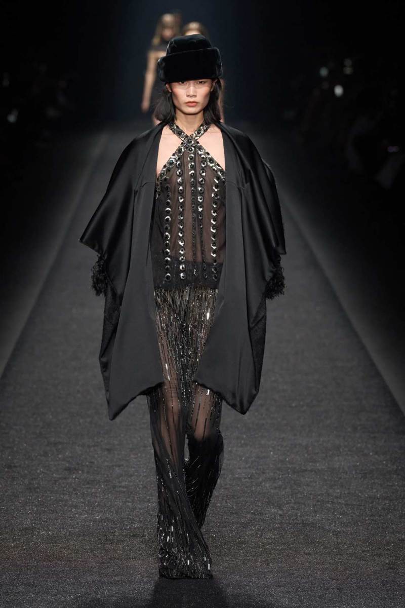 Alberta Ferretti decide di far sfilare Deva Cassel per raccontare quel romanticismo e quella femminilità molto sensuale che traspaiono nella nuova collezione. Deva Cassel indossa un abito molto elegante e sofisticato, lungo, morbido, che pare fluttuare nell’aria. Deva sembra una dea greca. Il suo abito trasparente viene reso sensuale dalla scollatura profonda e romantico dal decoro in pizzo. L’idea di femminilità che viene sprigionata è poetica, sofisticata, e riesce a risultare allo stesso tempo elegante ma pur sempre sexy.
