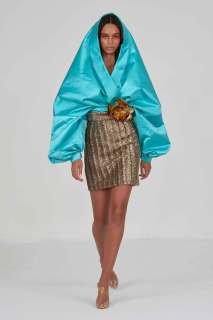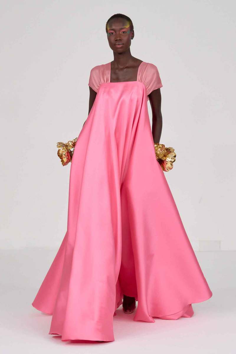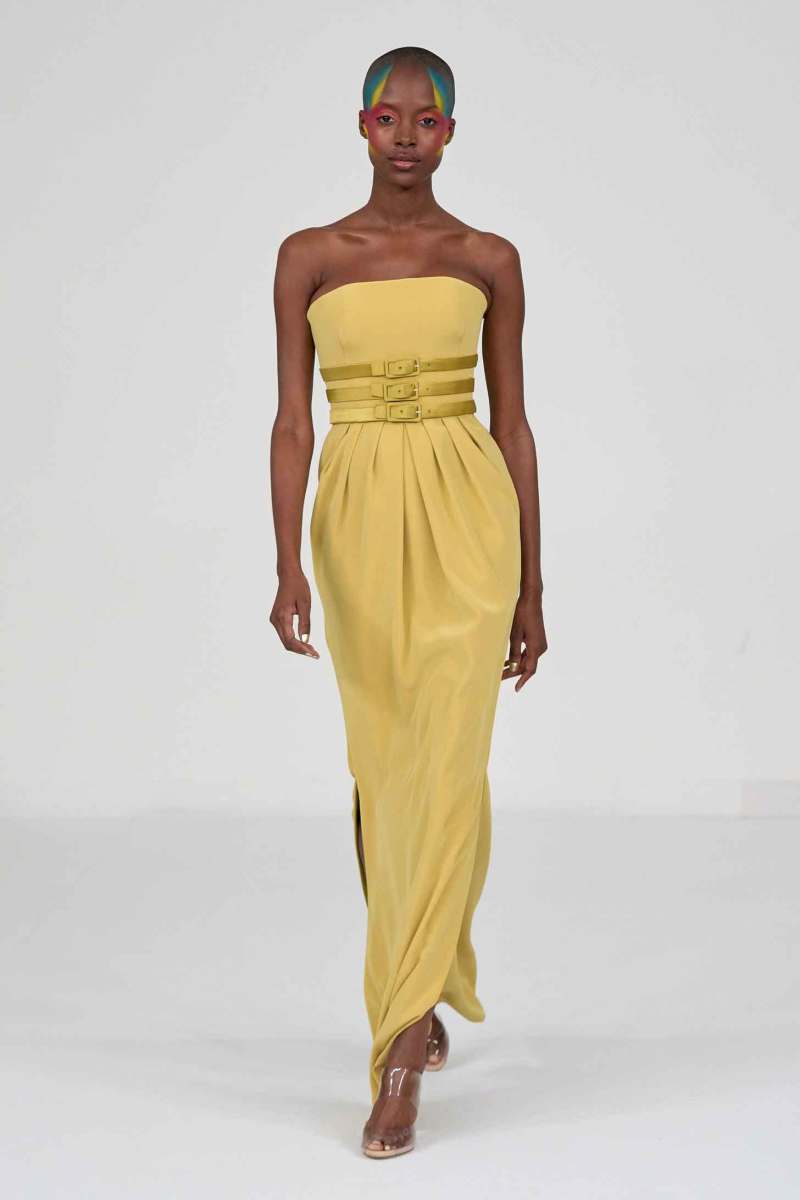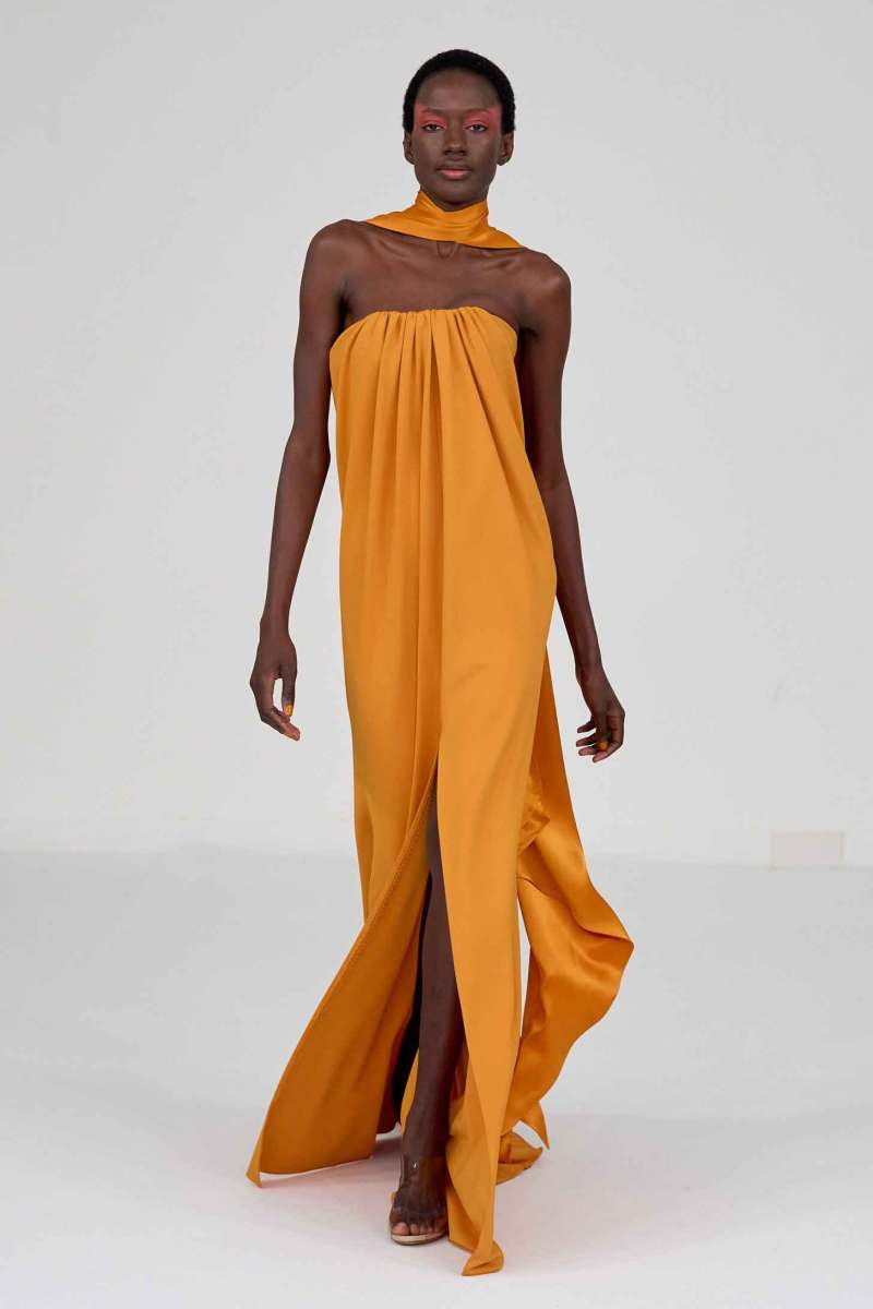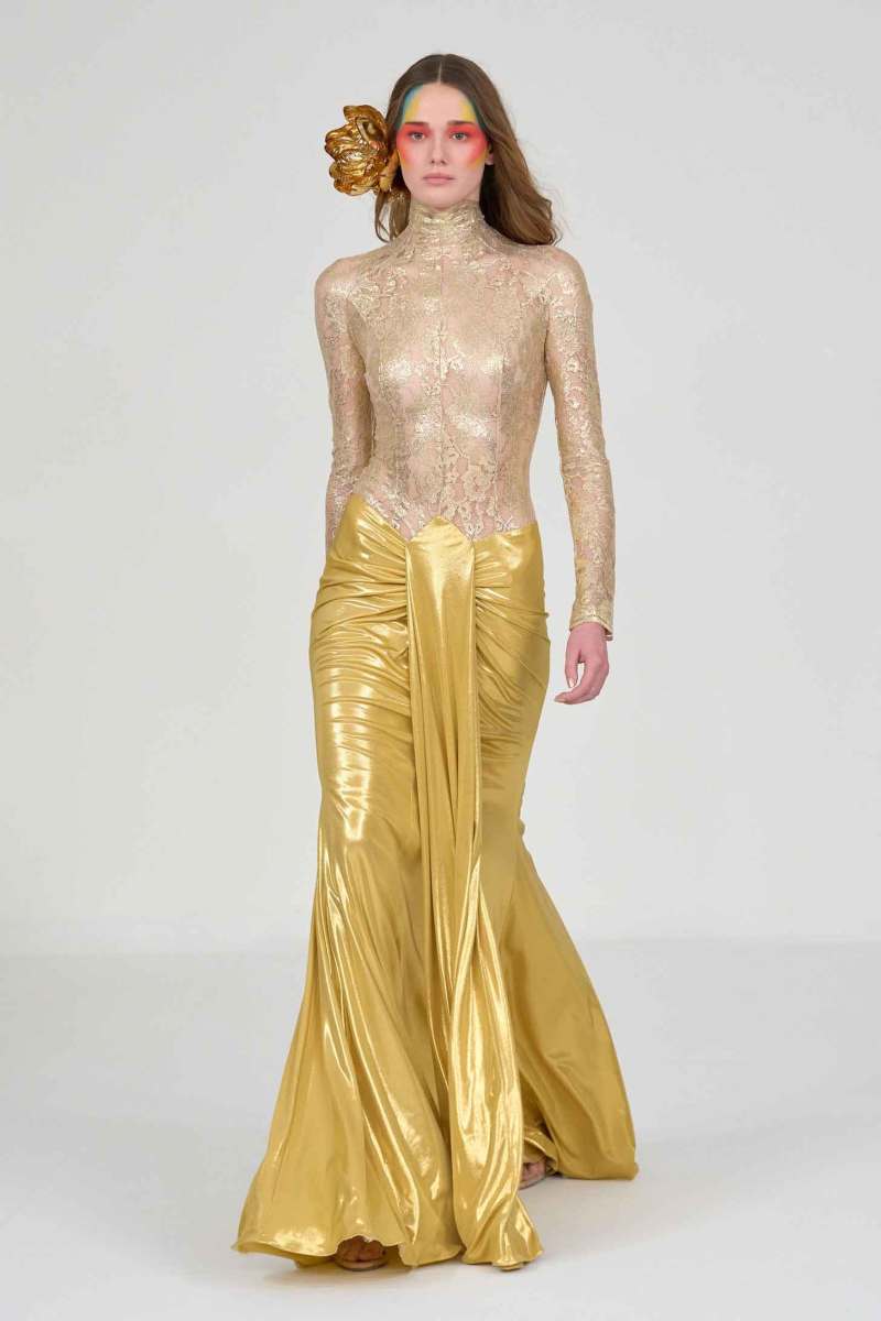 La collezione SS23 di Alexis Mabille stupisce per l'intensità dei colori, per la reinterpretazione dell'abito da sera e per l'esagerazione del dorato