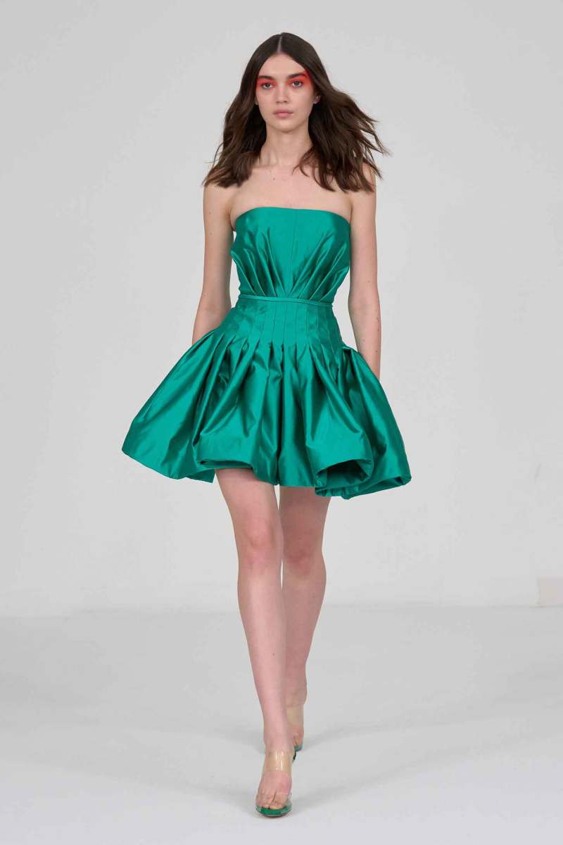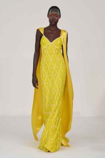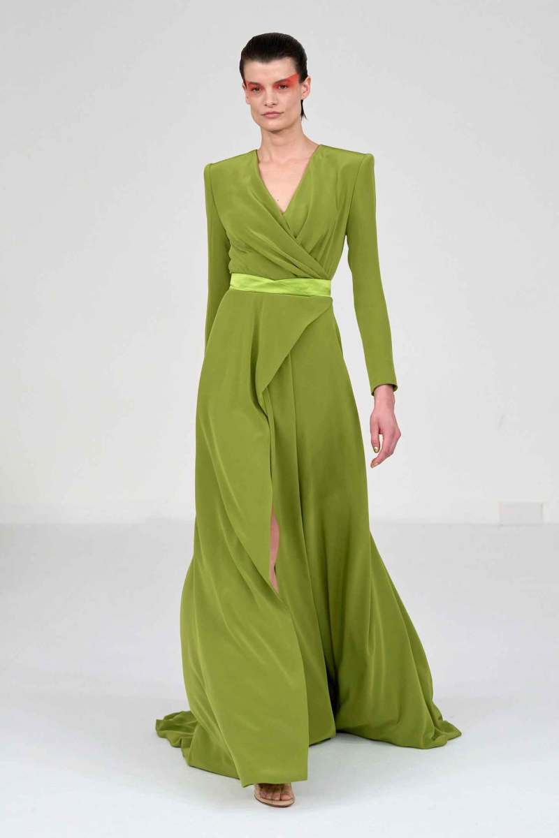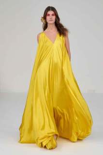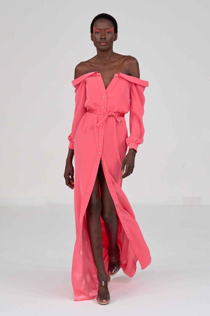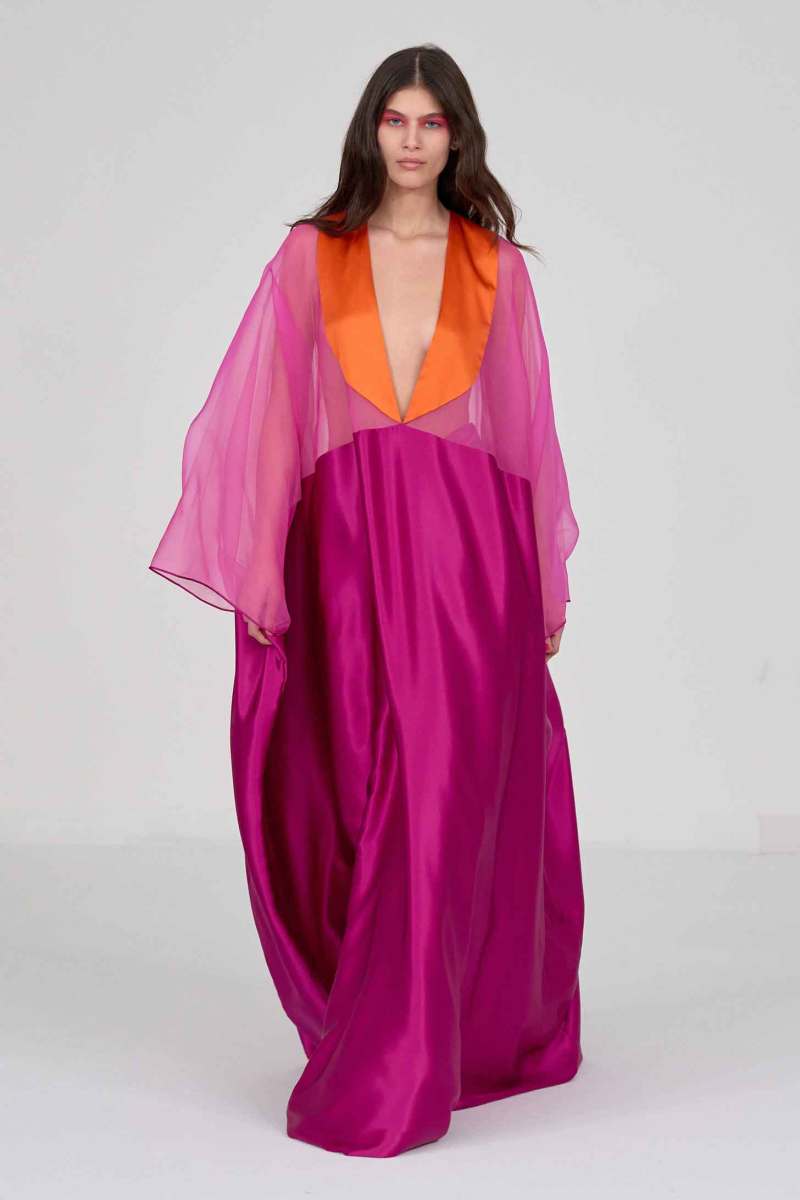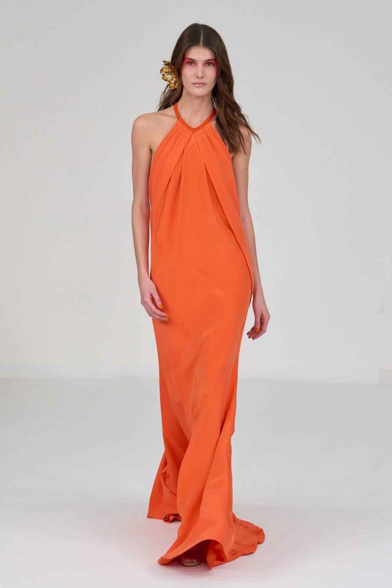 La collezione SS23 di Alexis Mabille stupisce per l'intensità dei colori, per la reinterpretazione dell'abito da sera e per l'esagerazione del dorato