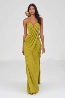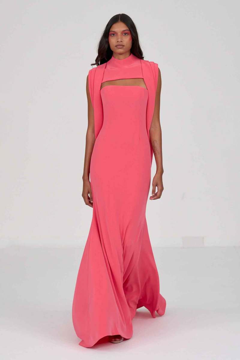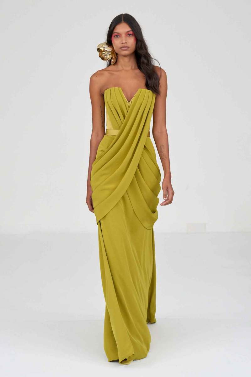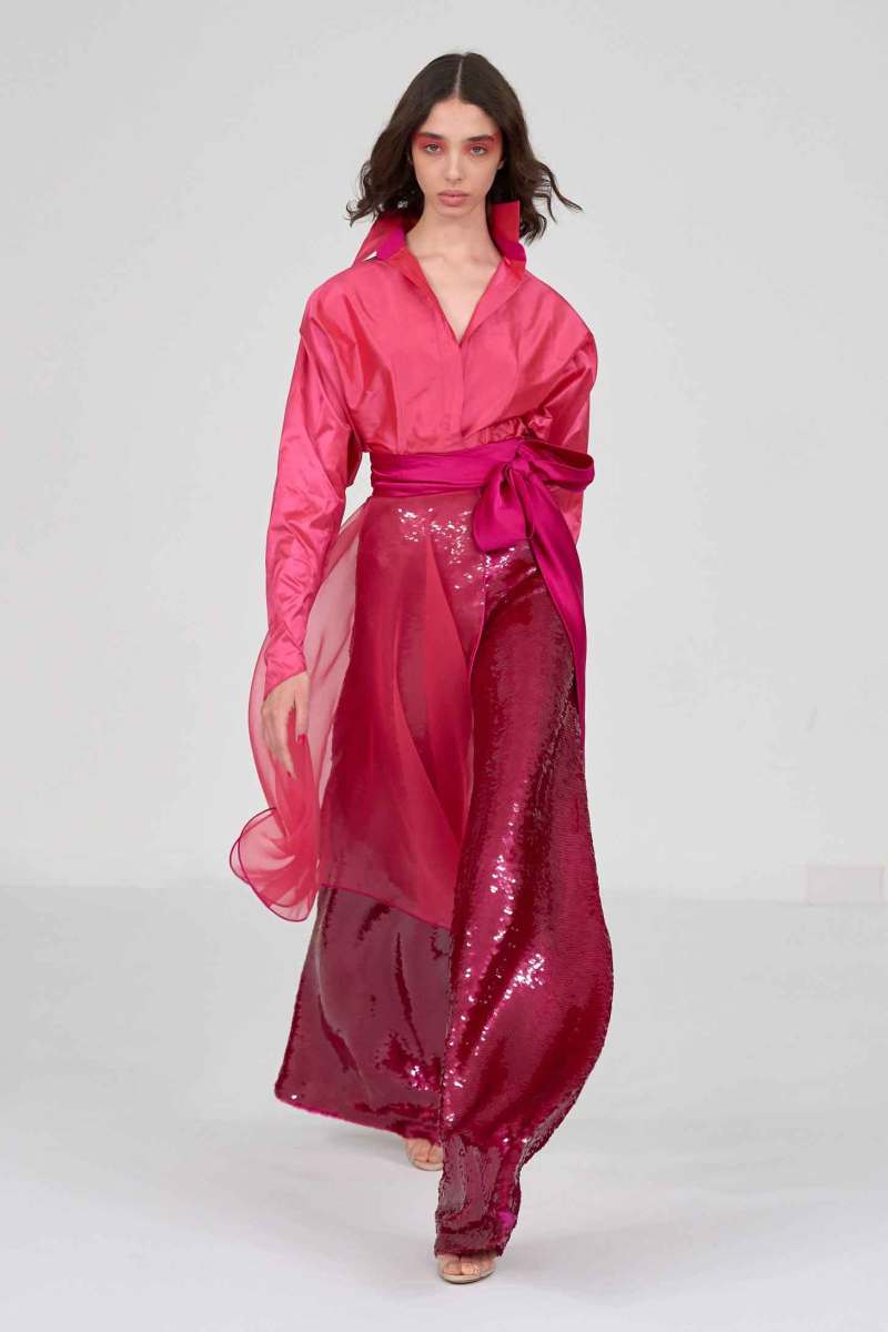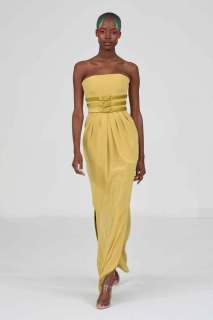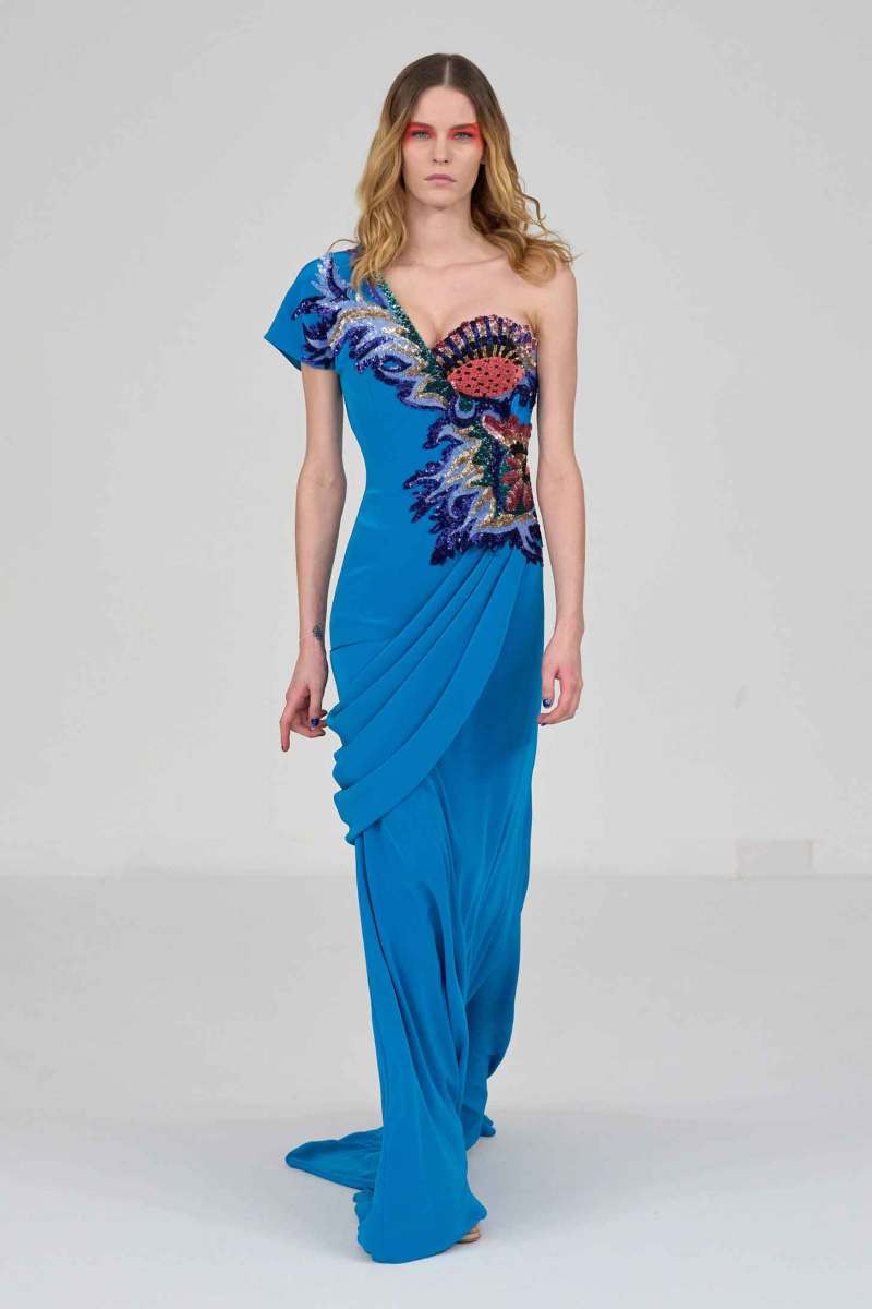 La collezione SS23 di Alexis Mabille stupisce per l'intensità dei colori, per la reinterpretazione dell'abito da sera e per l'esagerazione del dorato