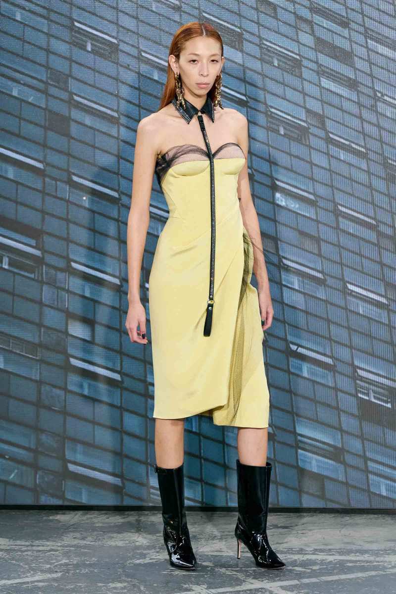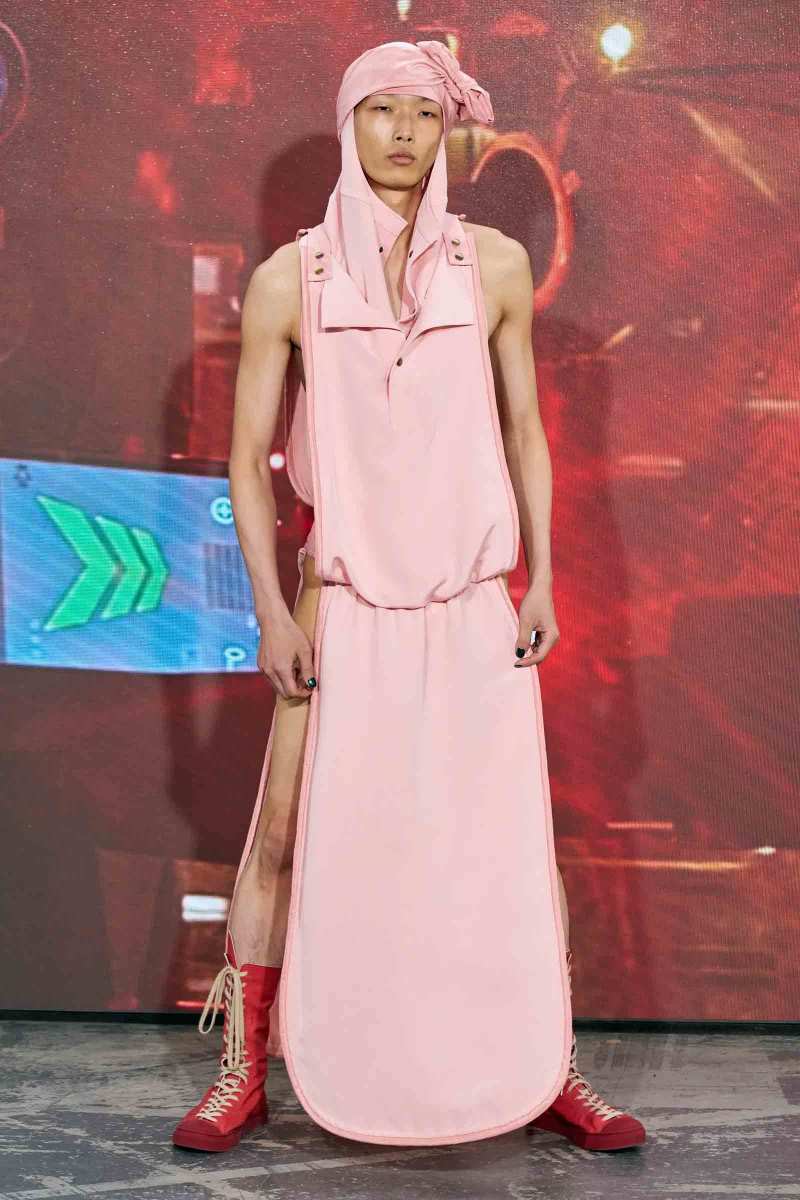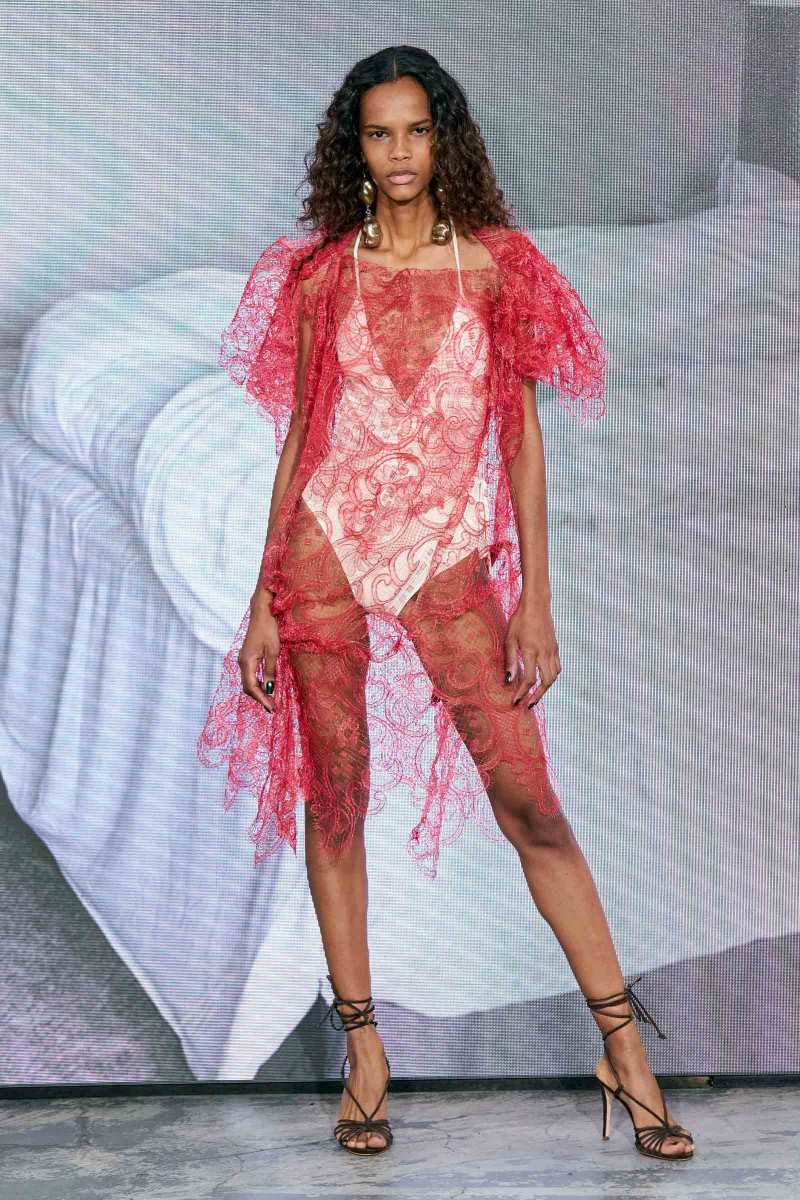 L’espressione post-pandemia della creatività di Andreas Kronthaler è incentrata sul vedo-non vedo sensuale che accomuna donne e uomini, con un “hint” alla cultura greca. I vestiti sono lunghi davanti ma corti dietro, con delle gonne stroncate giusto sopra le cosce che lasciano decisamente poco all’immaginazione.