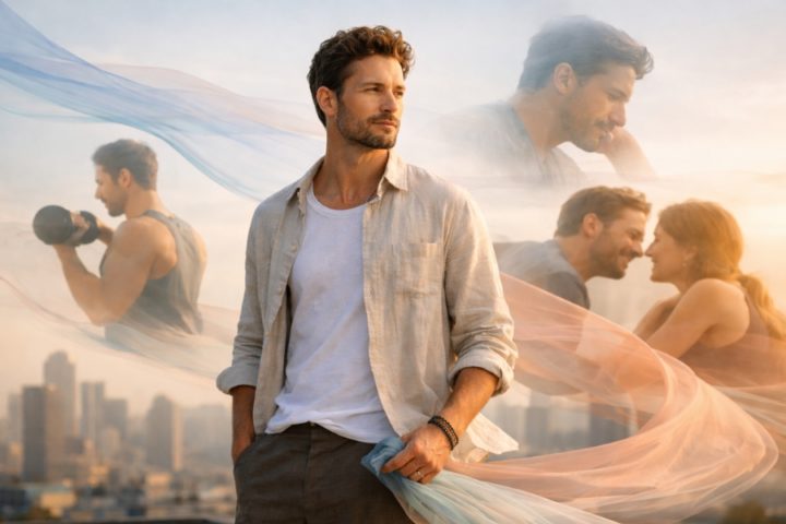 Gli ampi pantaloni fluttuanti prendono spunto dalle uniformi di arti marziali e sono stratificati con giubbotti lunghi con ampie ed ariose maniche di cotone.