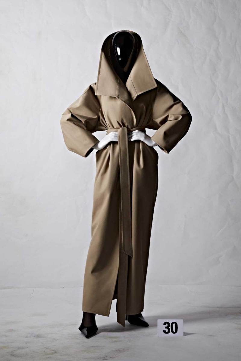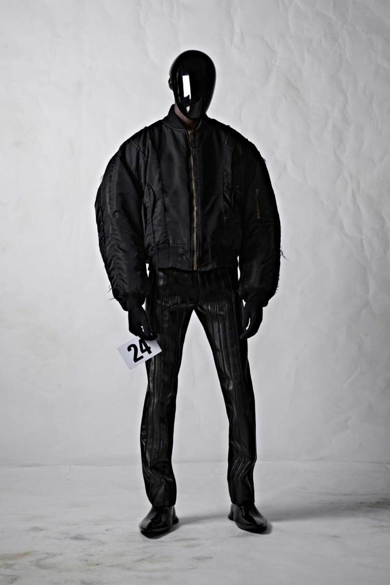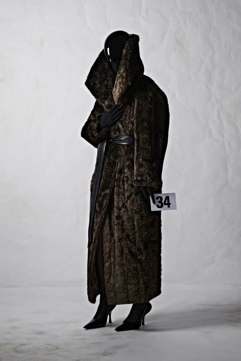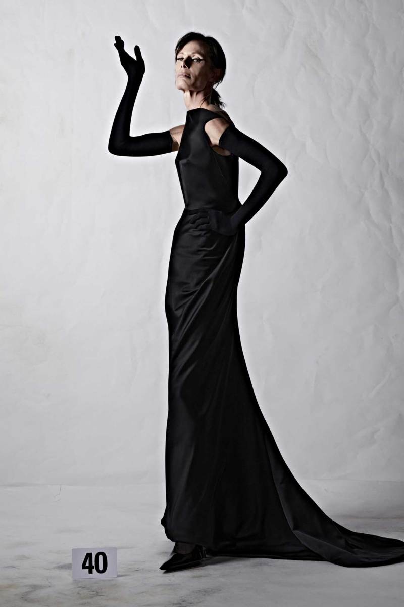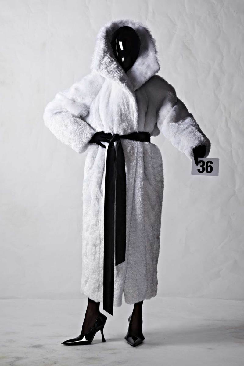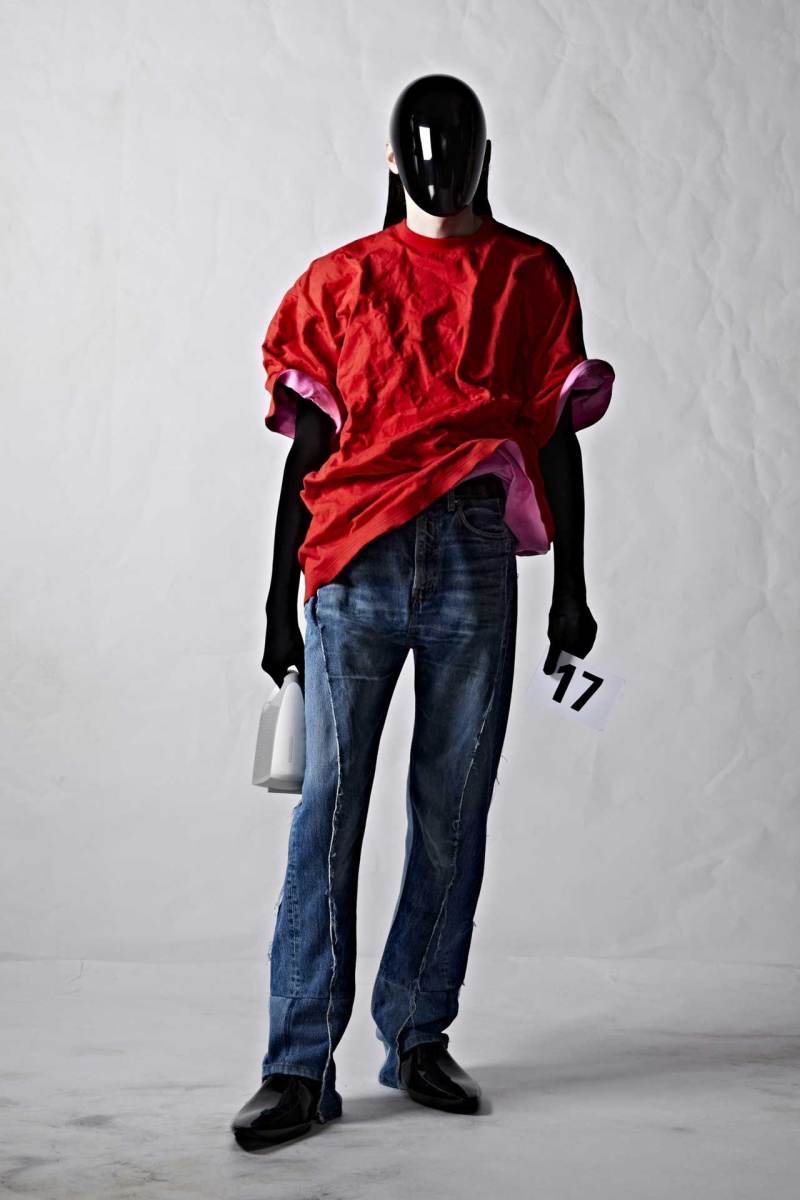Lo spettacolo inizia con tutti i modelli a volto scoperto che indossano abiti realizzati perlopiù in moderno neoprene, reminiscenza del tessuto Gazar di Cristobal, con al braccio le borse speaker realizzate con Bang&Olufsen. Tutti i materiali della collezione sono stati riciclati.